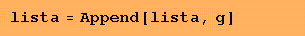 Lista on alkioiden järjestetty joukko. Lista muodostetaan aaltosulkeiden avulla. Se on siis muotoa {alkio1, alkio2, alkio3,..., alkioN}. Alkiot voivat olla lukuja, lausekkeita, tekstijonoja jne... . Listan alkiot voivat myös olla listoja.